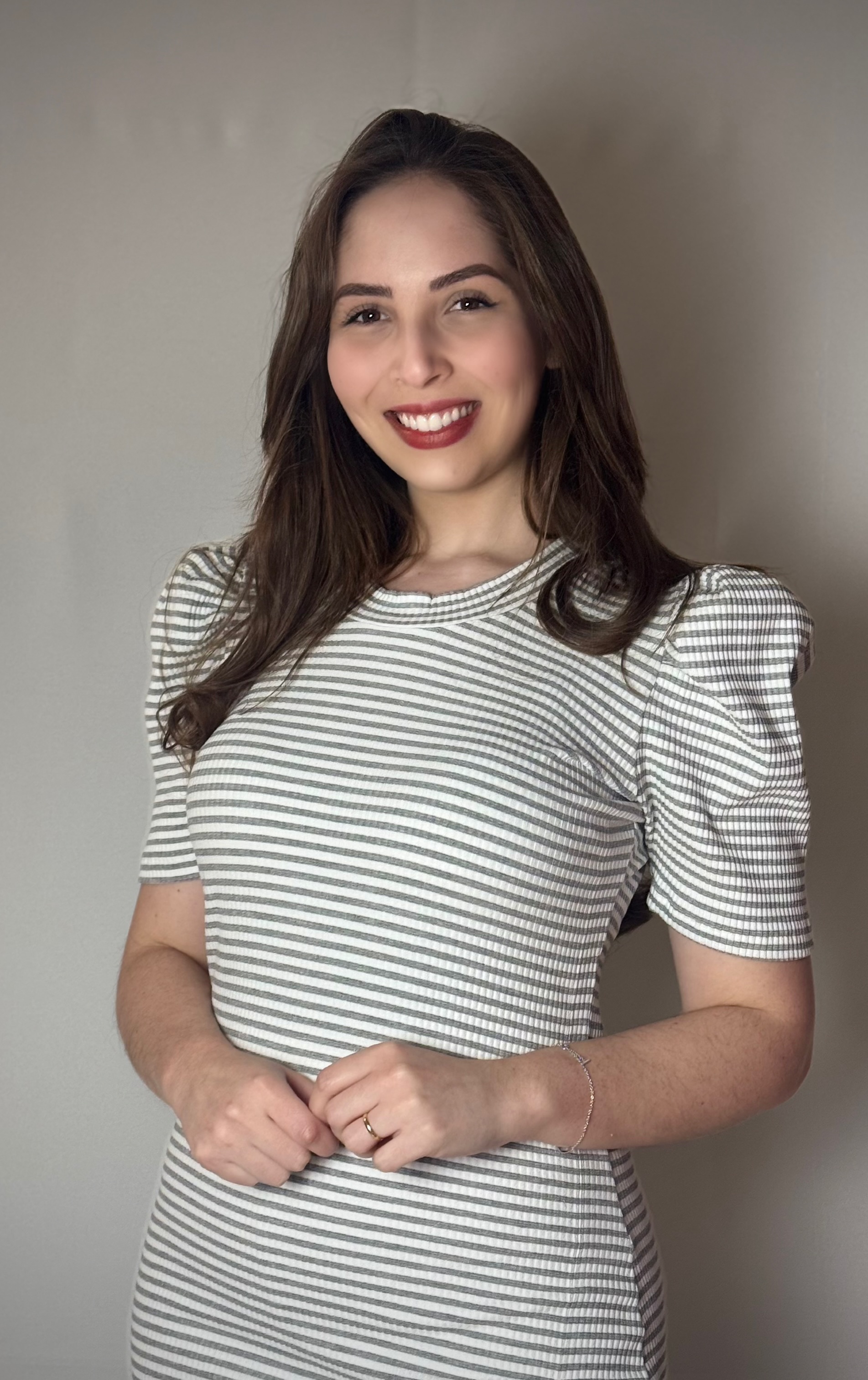 •Vestido •Gola redonda •Mangas bufantes •Cor: listrado cinza e branco •Tecido: malha canelada