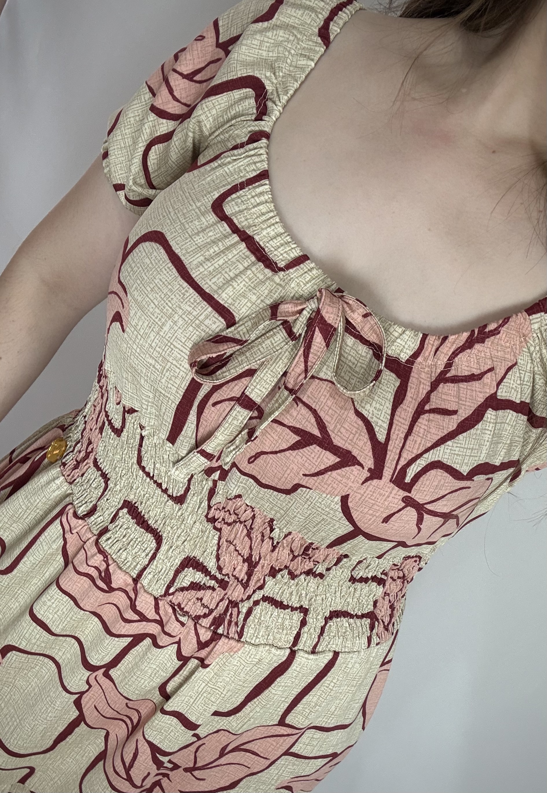 •Vestido •Tecido: malha poliflex •Cor: estampado •Modelagem: evasê •Lastex na cintura •Forrado •Decote ombro a ombro com elástico •Saia 3 marias •Mangas com elástico nos punhos